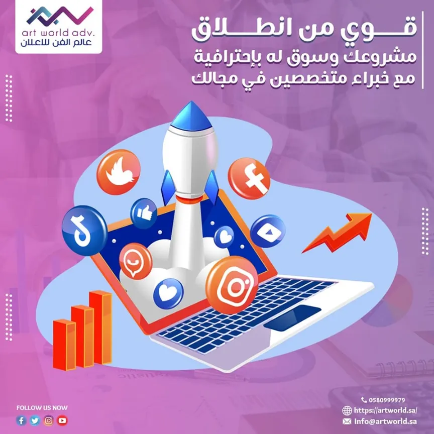 التسويق الإلكتروني بفريق متخصص ومتكامل تحت إدارة خبره عريقة في مجال الدعايا والإعلان والتسويق في وكالة عالم الفن للخدمات الإعلانيه المتكاملة